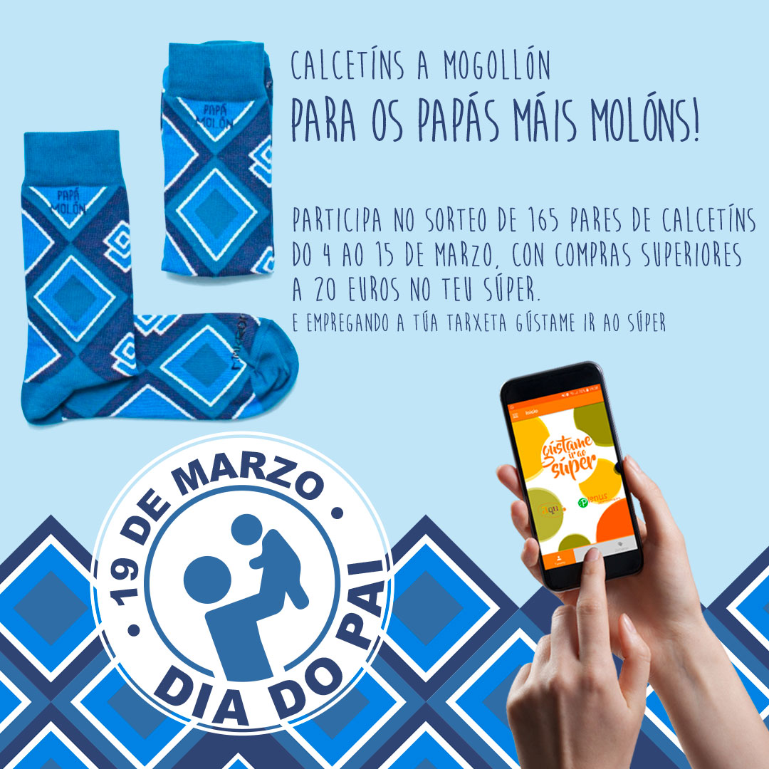 Desde hoxe e ata o 15 de marzo, en todos os nosos supermercados Plenus e Aquié, poderás participar nun sorteo de 165 pares de calcetíns de “Papá Molón”, para celebrar o día do pai!